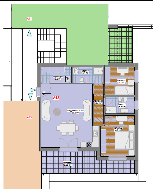 Gli appartamenti in vendita a Volpago del Montello saranno così composti: